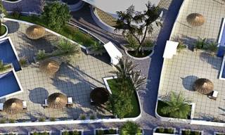 The exteriors of this residential are designed to maximize enjoyment of the Mediterranean climate. Many properties feature private gardens, ideal for those seeking an outdoor space to relax or enjoy outdoor activities. Additionally, the terraces offer a perfect spot to enjoy sea views or dine al fresco. For those opting for a high-bungalow, the solarium is an additional space that allows for maximum sun exposure throughout the day. The proximity to the sea, just 600 meters, makes water activities and beach walks a daily option for residents.