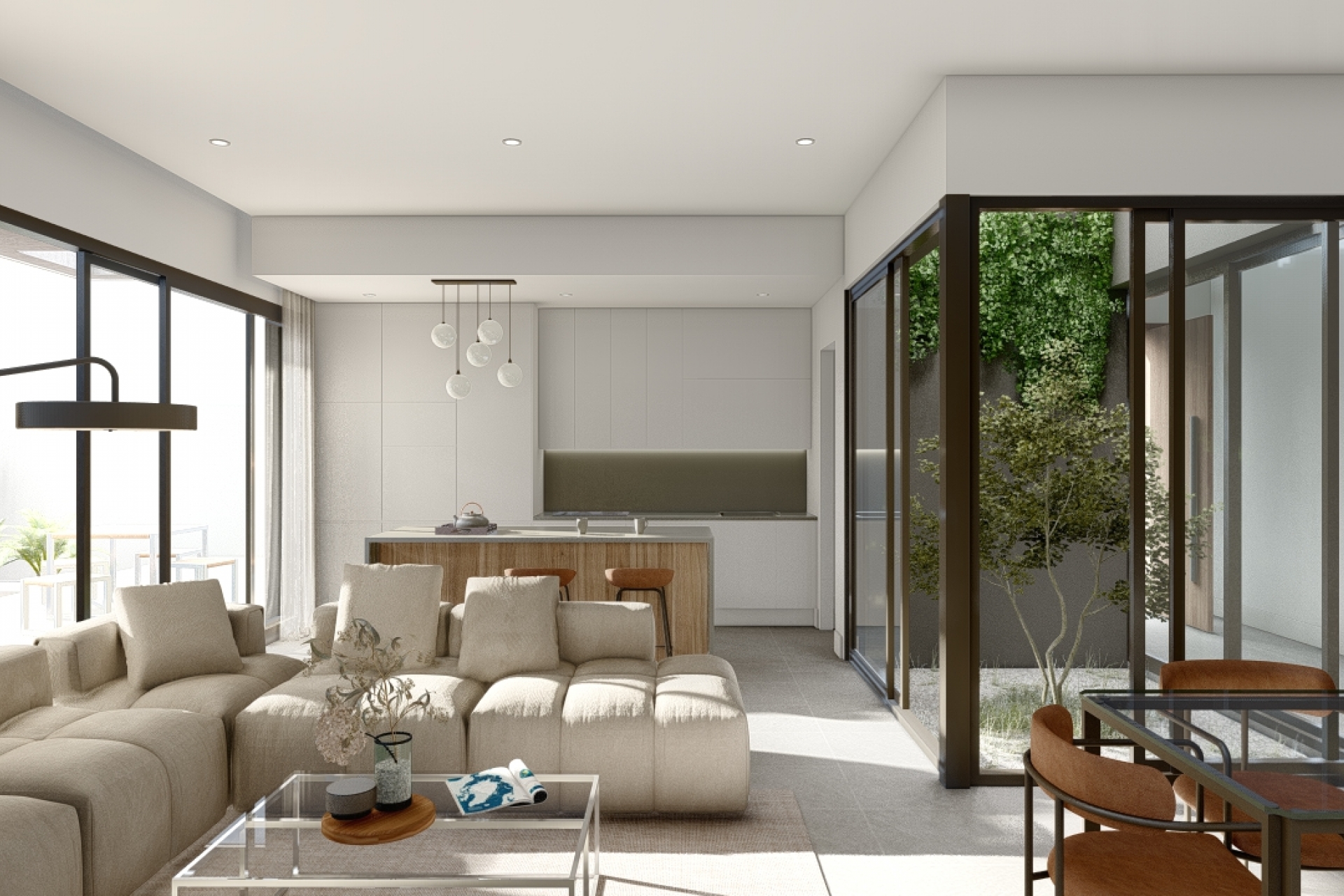 The interior of these detached homes in Pulpí is designed with a focus on quality and comfort. Porcelain tile floors add a touch of elegance and are easy to maintain. The homes feature three bedrooms and two bathrooms, offering a spacious and functional space for families of different sizes. The layout includes built-in wardrobes, providing efficient storage and keeping the home organized. Additionally, the homes are equipped with electric shutters and a video intercom, adding an extra level of convenience and security. The pre-installation of air conditioning ensures the home stays cool during the hottest months. A private solarium completes the offering, providing additional space for leisure and relaxation.