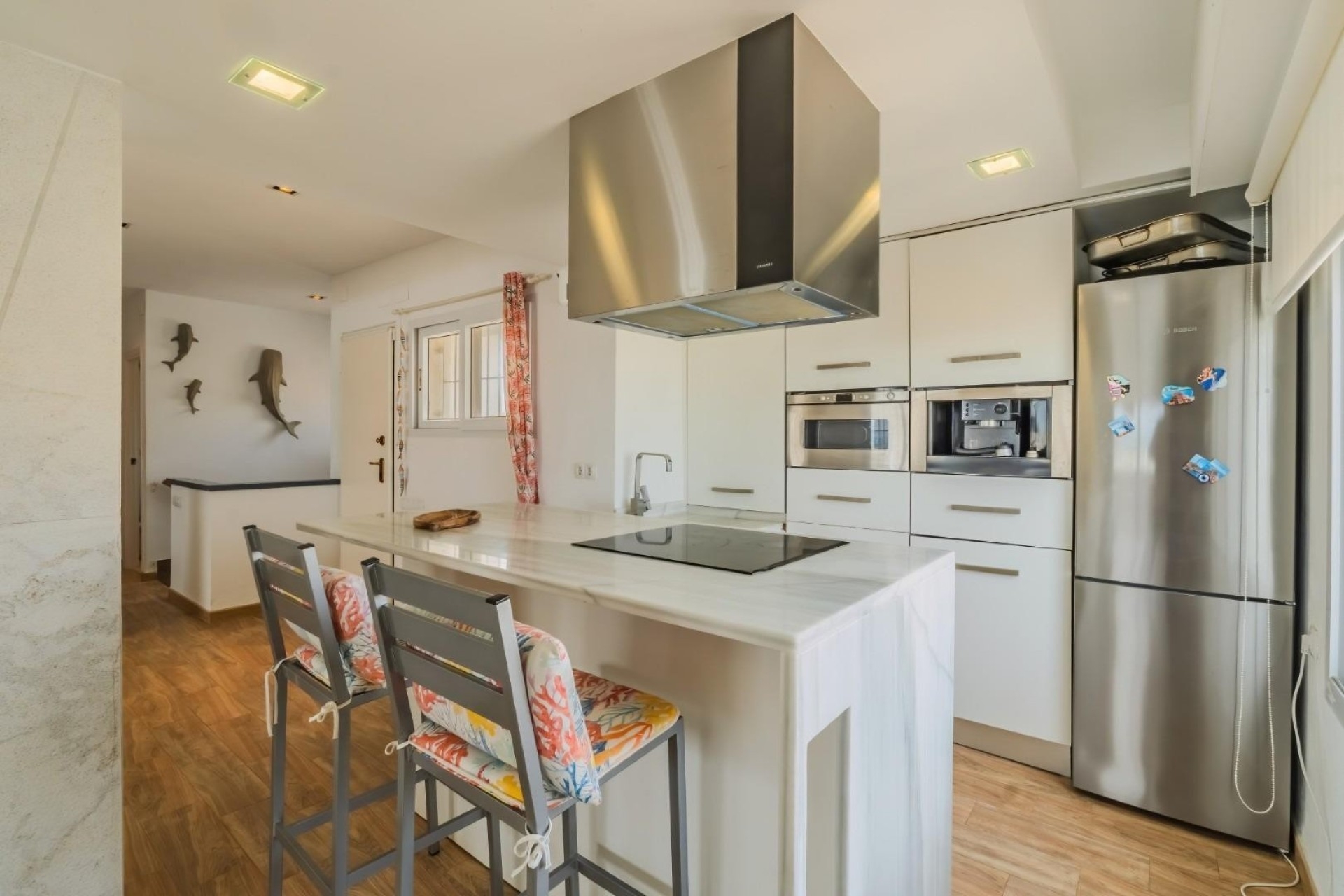 Discover this unique property on the beach in La Manga, perfectly located in front of the sparkling sea. With an area of approximately 300 m² on a plot of 698 m², this property offers flexibility with two separate floors, which can be used as one unit or two separate homes as it is connected by an internal staircase. The ground floor includes a kitchen with all amenities with direct access to the plot, a spacious living-dining room, a bathroom and three bedrooms, one of which is en suite. The top floor has been recently renovated with a modern design, and offers a great living room with open kitchen, a central kitchen island, three bedrooms and two bathrooms, one of which is en suite. This floor has a high finish of tiled floors and marble walls. From the living room you have access to an impressive terrace with panoramic sea views. Outside the property has a large plot with its own large barbecue area where you can sit and enjoy wonderful dinners and enjoy privacy. This is a unique opportunity to own an exclusive home right by the sea, with exceptional comfort and style. Location: La Manga - proximity to the sea, beaches and restaurants and life Costa Calida as it is called is a description for (the warm coast) Here there are more than 300 days of sunshine a year. The climate is incredibly pleasant and with good temperatures both in the water and on land for much of the year, this is a good climate to both live and vacation in. La Manga is close to large, beautiful cities with lots of history such as Murcia and Cartagena, where you can spend many years exploring and enjoying all the cultural elements that are found here. La Manga is known for its crystal clear water. The house has many restaurants and shops right in the vicinity within walking distance, and there are also many opportunities for water sports, paddle, tennis and of course golf. Beaches and sea experiences: Two seas to choose from: La Manga is a long, narrow isthmus that separates the calm saltwater Mar Menor from the open Mediterranean - both offer beautiful beaches. Popular bathing spots: Playa Honda, Playa Paraíso, Playa Barco Perdido and Cala del Pino – with calm conditions for swimming, sunbathing and beach life. Mar Menor waters: Warm and shallow, ideal for families and less experienced swimmers. Water sports and boating: Water sports: Windsurfing, kitesurfing, kayaking, paddleboarding, sailing and snorkelling are all available in the Mar Menor waters. Boat trips: A boat trip in the Mar Menor offers views of the entire coastline and easier access to small islands and coves. A Nature experiences and outdoor activities: Calblanque Regional Park: Wild, unspoilt nature with walking trails, picnic areas and spectacular beaches without large tourist facilities. Salinas y Arenales de San Pedro del Pinatar: Nature reserve with salt flats and birdwatching, especially good for ornithologists and nature enthusiasts. Mud Baths: At San Pedro del Pinatar you can try natural mineral-rich mud baths, known for their skin benefits. Golf, sports and fitness centres: La Manga Club: An internationally renowned sports resort with three golf courses, tennis and padel courts, spa and fitness facilities. Culture, city life and gastronomy: Plaza Bohemia and Avenida Gran Vía in La Manga: Streets with restaurants, bars, coffee shops and shopping. Gastronomy: Local seafood and traditional dishes such as caldero (rice and fish dish) and fresh tapas. Tomás Maestre Marina: Marina area where you can stroll, eat with a sea view or take boat trips. Explore surrounding towns and places: Cabo de Palos: Charming fishing village with a historic lighthouse, marine reserves and rugged bays for diving and snorkelling. Cartagena and Murcia: Cities with rich historic centres, museums, restaurants and cultural experiences (and great day trips). Family-friendly and relaxing activities: Walks and bike rides: Along the Mar Menor promenades and in quiet urban areas. Markets and local shops: Local markets (for example in Santiago de la Ribera) offer an insight into the region's products, crafts and cuisine. Contact us for more information, or join one of our free viewings to see this beautiful property.