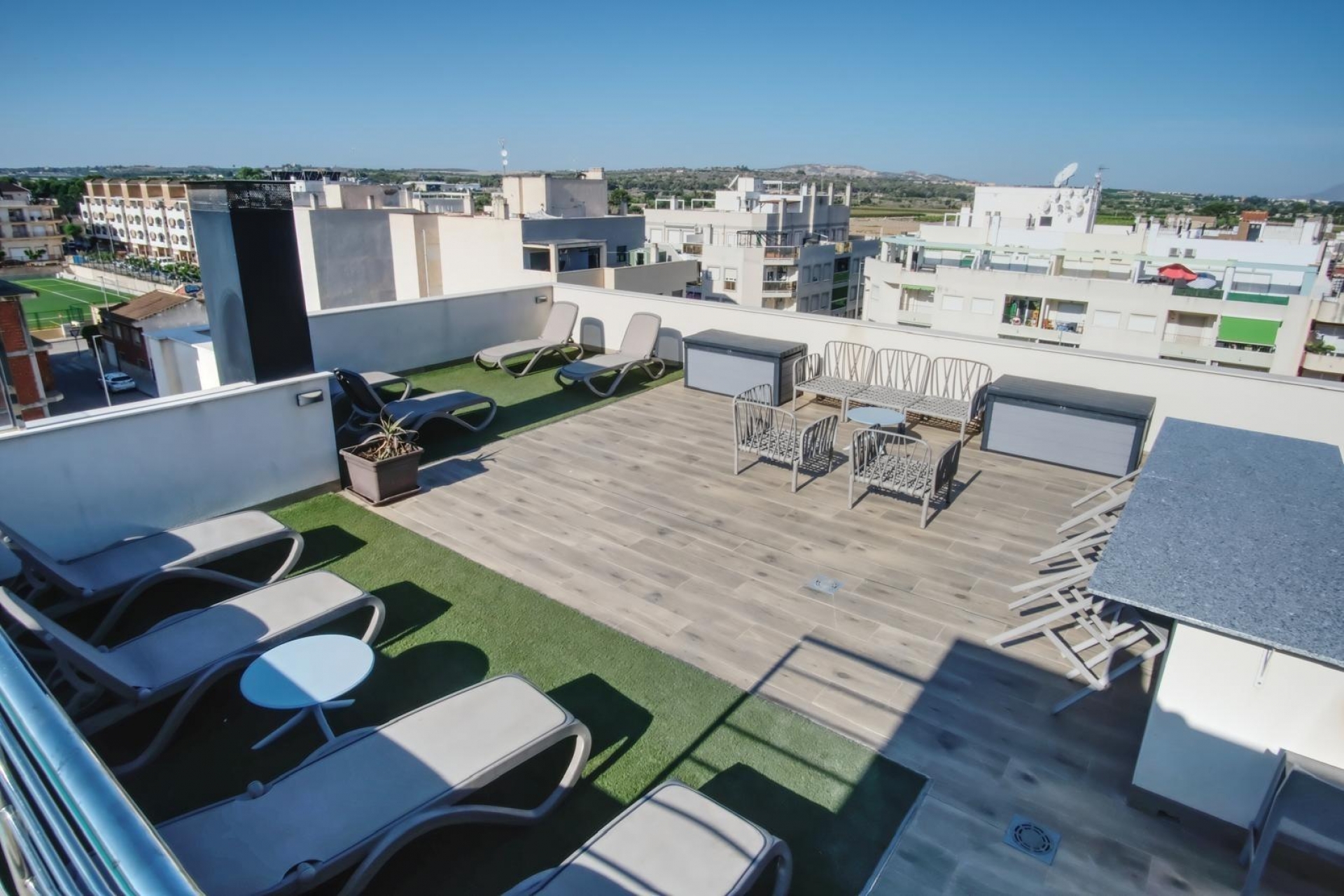 Live in comfort and style in this spectacular modern apartment located on the second floor, west-facing to fill every corner with natural light and offer unforgettable sunsets. With 2 bedrooms and 2 bathrooms, every detail has been designed using high-quality materials to provide elegance and comfort.~~The main living space features a spacious open-plan living room with an integrated kitchen, complete with a stylish breakfast bar, perfect for everyday living or entertaining friends and family. The property also includes a practical pantry-storage room at the entrance, ideal for keeping everything organised, and a 15 m2 covered terrace that invites you to relax or enjoy outdoor meals all year round.~~Among its standout features are polished concrete floors, high-end appliances and designer furniture, as well as high-quality metal carpentry with mosquito screens and roller blinds. The apartment also benefits from an efficient climate control system, including centralised air conditioning and ceiling radiators, ensuring maximum comfort in every season. In addition, the property has a private storage room in the basement, with the possibility of renting a parking space.~~The building offers unique communal areas on the rooftop terrace, including an outdoor gym, swimming pool, barbecue area, sauna and showers, creating the perfect space to relax and enjoy leisure time without leaving home.~~The property is sold furnished and equipped, except for some items; see inventory.~~Located in Formentera del Segura, in a quiet and pleasant area, just 5 km from the beaches of Guardamar del Segura, this home perfectly combines the tranquillity of residential living with proximity to the sea and all amenities — an ideal place for year-round living or for enjoying your holidays.~
