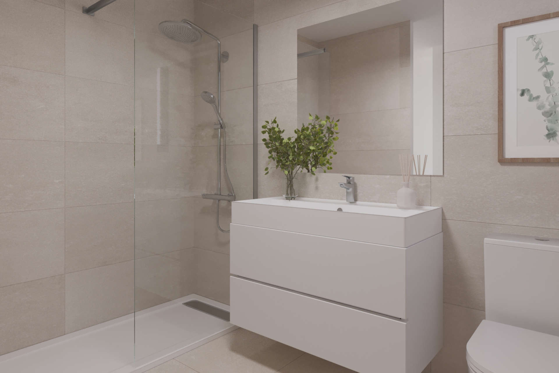 El interior de estas plantas bajas en Estepona está equipado con características modernas y de alta calidad. Los suelos de gres porcelánico aportan un toque de elegancia y durabilidad. Las viviendas están equipadas con aire acondicionado, garantizando confort durante todo el año. Las persianas eléctricas y el videoportero añaden un nivel adicional de comodidad y seguridad. Los electrodomésticos están incluidos, facilitando la vida diaria. Además, los armarios empotrados ofrecen un almacenamiento eficiente y estilizado.