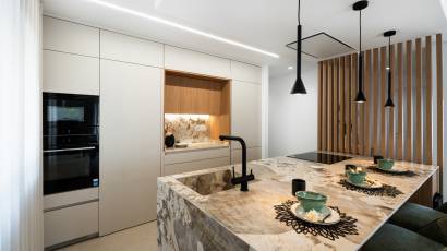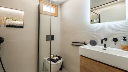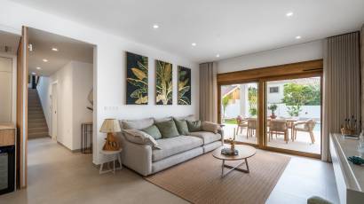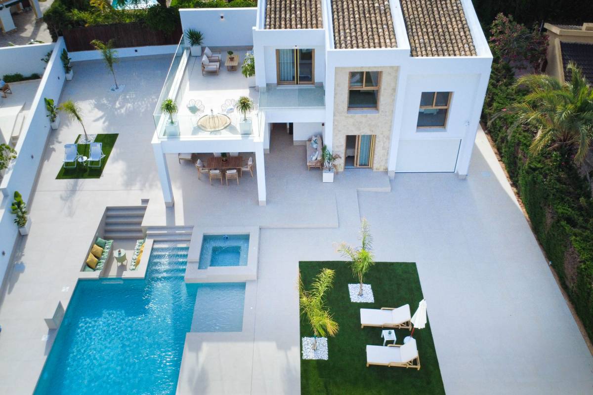 Wnętrze willi jest wyposażone w nowoczesne i wysokiej jakości elementy. Podłogi z gresu porcelanowego nadają elegancki wygląd i są łatwe w utrzymaniu. Willa jest w pełni umeblowana, co ułatwia przeprowadzkę i pozwala cieszyć się komfortem od pierwszego dnia. Kuchnia jest wyposażona w najnowsze urządzenia, co sprawia, że przygotowywanie posiłków jest przyjemnym doświadczeniem. System klimatyzacji zapewnia świeże powietrze przez cały rok. Elektryczne rolety i wideodomofon dodają dodatkowy poziom wygody i bezpieczeństwa. Wbudowane szafy w sypialniach oferują dużo miejsca do przechowywania.