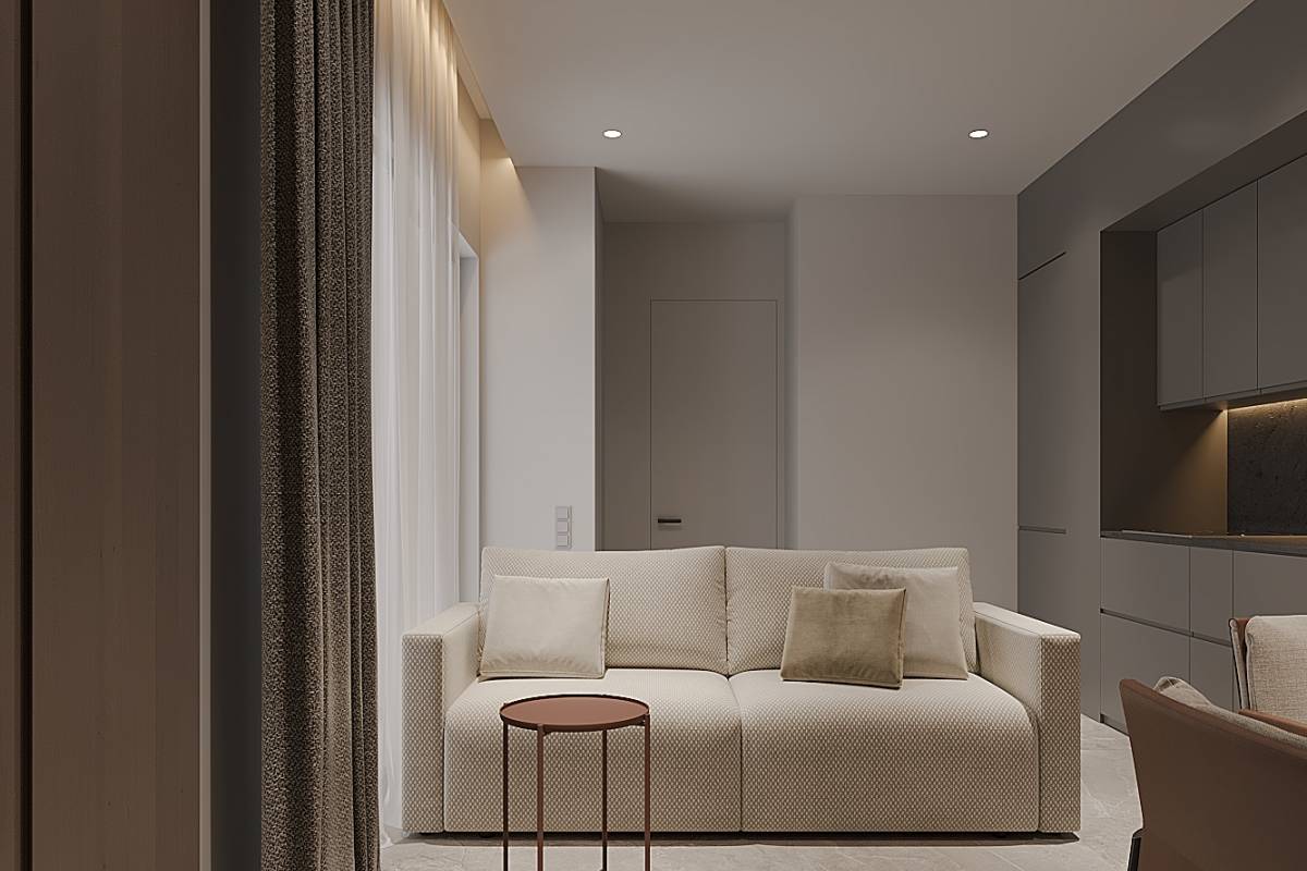 Wnętrza apartamentów zostały zaprojektowane, aby zapewnić maksymalny komfort i funkcjonalność. Każda jednostka posiada jedną sypialnię i jedną łazienkę, idealne dla par lub osób szukających przytulnej przestrzeni. Podłogi z gresu porcelanowego dodają elegancji i są łatwe w utrzymaniu. Elektryczne rolety i klimatyzacja zapewniają komfortowe warunki przez cały rok. Dodatkowo, wbudowane szafy oferują efektywną przestrzeń do przechowywania, utrzymując porządek i organizację w domu. Rozkład pomieszczeń został zaprojektowany tak, aby maksymalnie wykorzystać dostępną przestrzeń, tworząc przytulne i funkcjonalne środowisko.