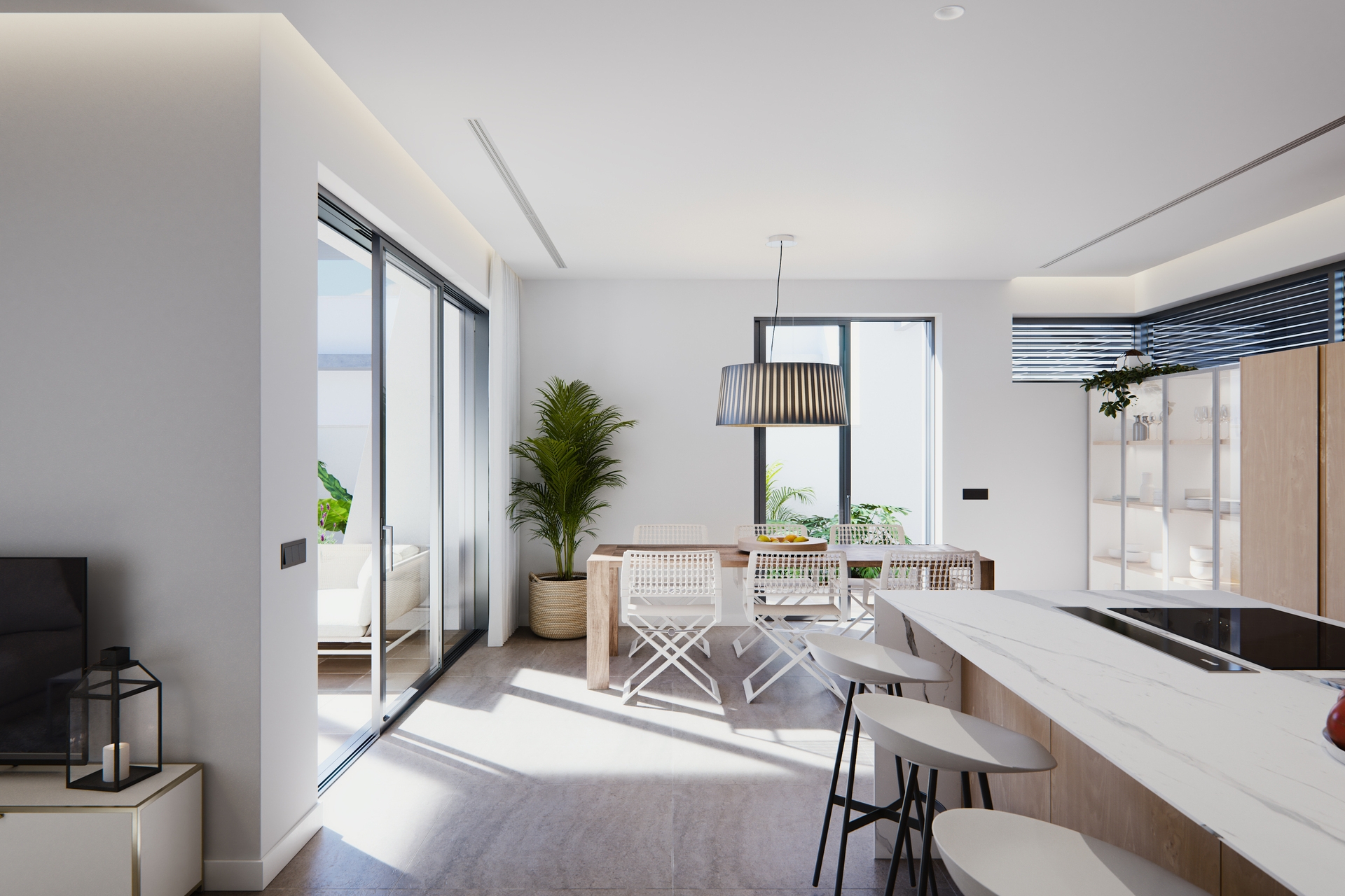 Wnętrze willi zostało zaprojektowane, aby oferować nowoczesną i przytulną atmosferę. Z trzema sypialniami i trzema łazienkami, każda przestrzeń została zaplanowana, aby maksymalizować komfort i prywatność. Podłogi z gresu porcelanowego dodają wyrafinowania i są łatwe w utrzymaniu. Wille są wyposażone w klimatyzację, zapewniającą przyjemną temperaturę przez cały rok. Elektryczne rolety i wideodomofon dodają dodatkowy poziom wygody i bezpieczeństwa. Wysokiej jakości sprzęt AGD jest wliczony, ułatwiając codzienne życie. Wbudowane szafy w sypialniach oferują dużo miejsca do przechowywania, utrzymując przestrzenie uporządkowane i funkcjonalne.